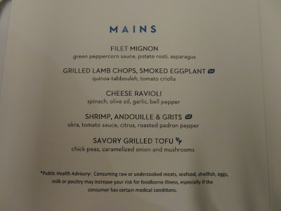 Tonight was our first "Dressy" night. HAL used to have "Gala" nights. Recently they changed to "Formal", "Dressy", and "Casual". Nobody is sure exactly what the difference is between Dressy and Formal. From what I saw tonight, there wasn't much difference for men. Most men had on a jacket and tie, there were a couple of tuxes, and a few men had neither a jacket nor tie. For women, I did not see any long dresses (although I am sure there were some out there) and many had on cocktail dresses, nice dresses, or pant suits. We did have a special menu but no pillow gift.